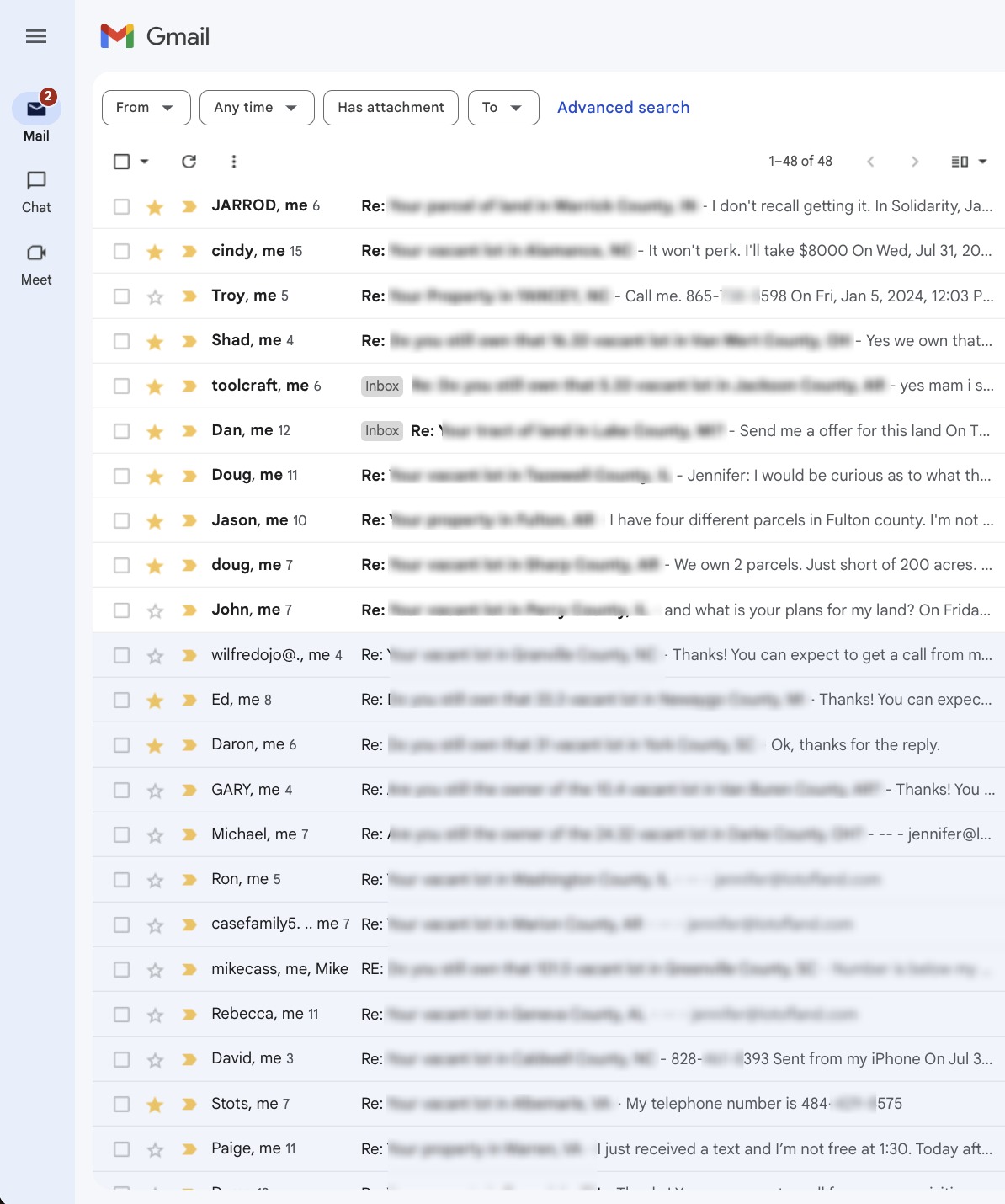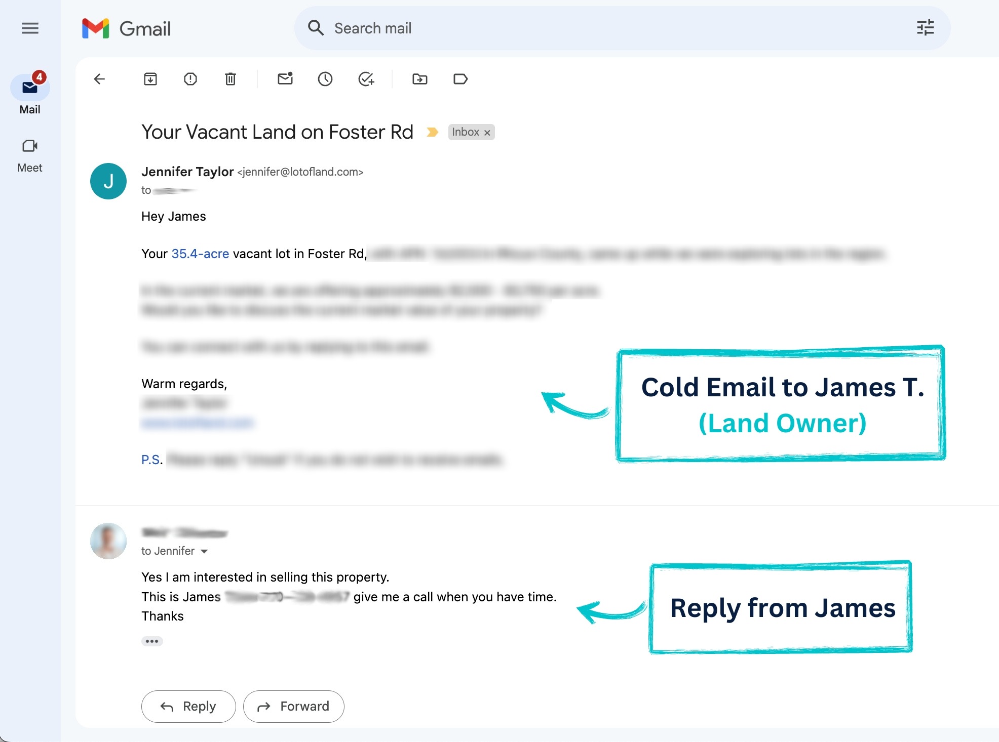 Positive replies from sellers who want to sell their land.